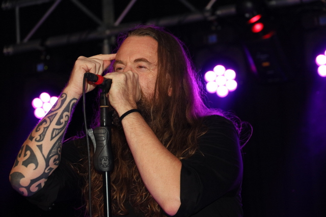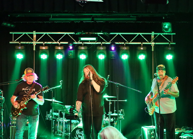 Weil die Prognosen wenig einladend waren, wurde die Bühne kurzerhand vom Freien in den „HubRaum“ verlegt. Mit starker Licht- und Tontechnik verwandelte sich die inzwischen schon legendäre und coole Motorradbar in eine Konzerthalle mit Festival-Atmosphäre.