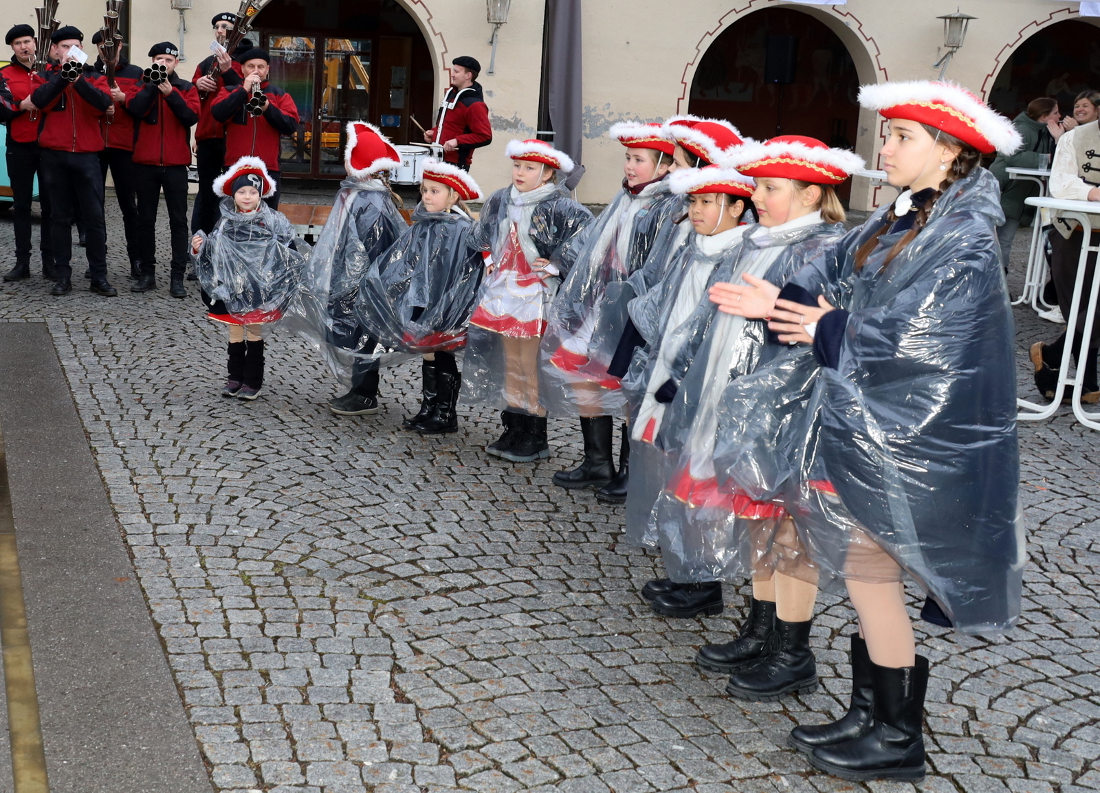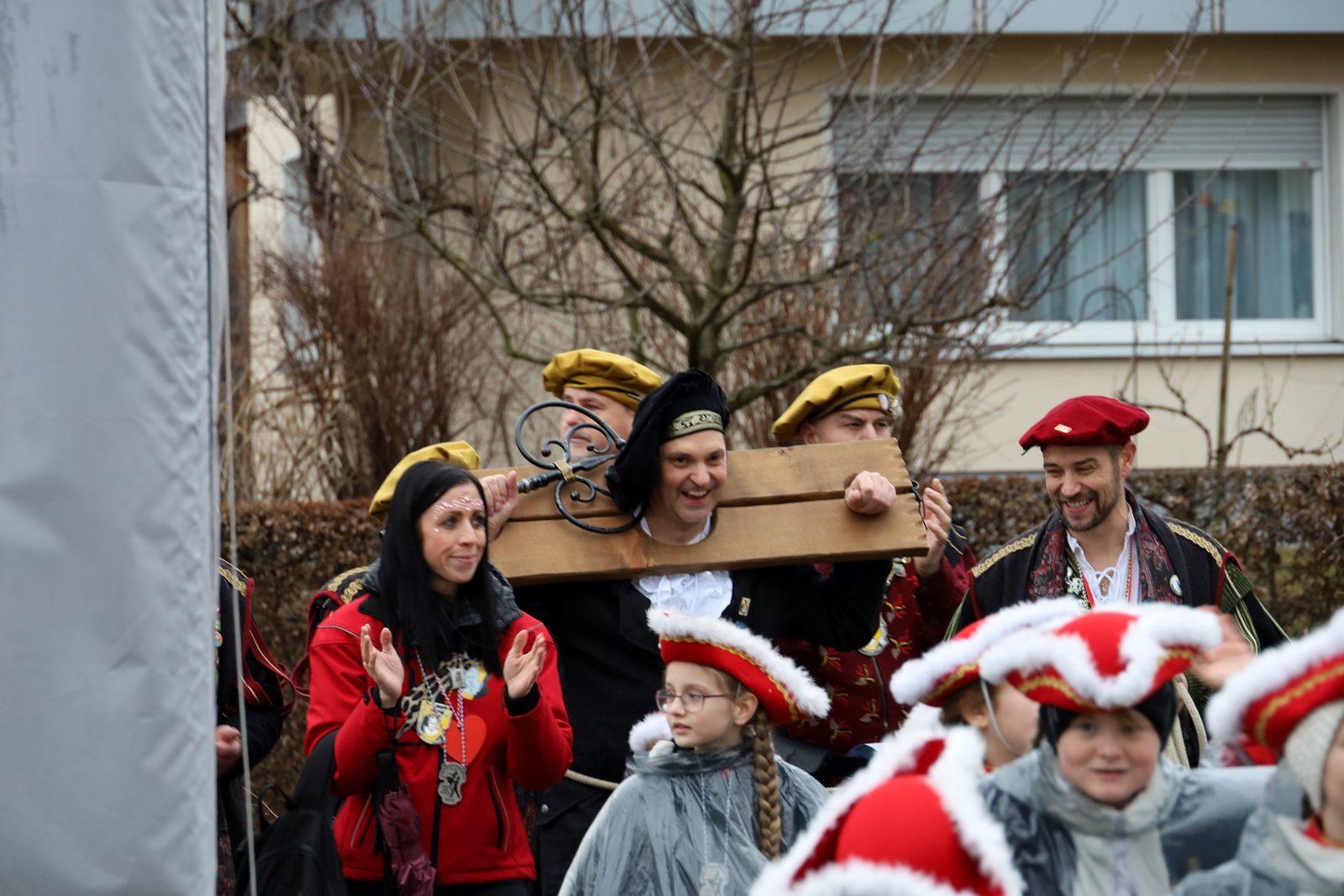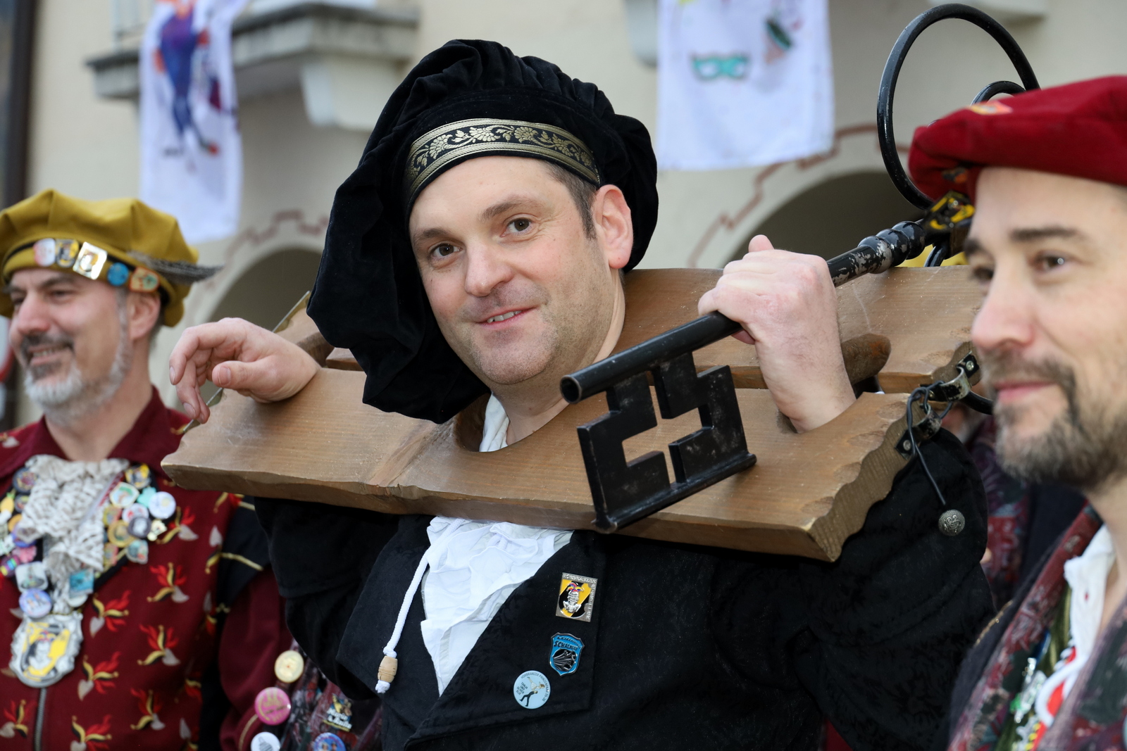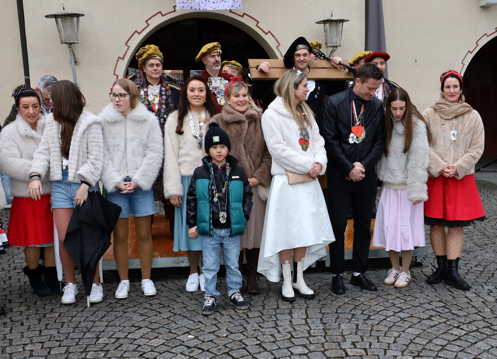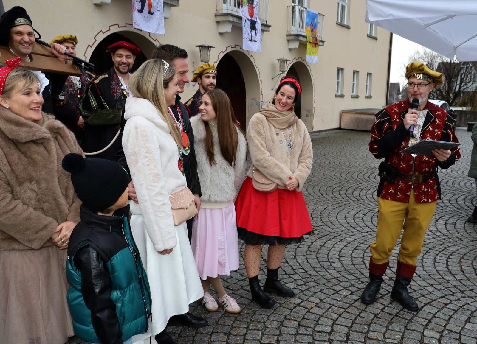 Am Gumpigen Donnerstag stürmte traditionell die große Faschingsgilde in Hörbranz das Gemeindeamt und verhaftete Bürgermeister Andreas Kresser. Anschließend wurde er unter den Klängen der Leiblachtaler Schalmeien von den Hörbranzer Raubrittern zum Kirchplatz gebracht. Dort wurden Bürgermeister Kresser vom amtierenden Prinzenpaar Prinzessin Tanja und Prinz Oliver seine Verfehlungen vorgehalten. Unter den strengen Blicken von Infantin Alisa, dem wunderbaren prinzlichen Gefolge, der Kindergarde Hörbranz, den Howilar Rutschbugglarn, den Leiblacher Fetzahexa, der Bergerly Hills, den Lochauer Bäumlern und zahlreichen Hörbranzerinnen und Hörbranzer, die sich das Spektakel trotz unfreundlichem Wetter nicht entgehen ließen, versuchte Kresser noch mit Ausreden seinen Platz im Gemeindeamt zu verteidigen. Trotzdem wurden dem Ortschef von den Raubrittern der Gemeindeschlüssel und somit auch die Gemeindegeschäfte an Ort und Stelle abgenommen und an das Prinzenpaar übergeben. Bis zum Kehraus haben nun die Narren in Hörbranz die Regierung in der Hand. Gleich als erstes wurden Bürgermeister Andreas Kresser und Vizebürgermeister Stefan Fischnaller dazu verurteilt, die Suppe die sie der Bevölkerung eingebrockt haben, Gratis auszuschöpfen. Dazu stimmten die Leiblachtaler Schalmeien ihre Instrumente und trotz leichtem Nieseln wurde am Kirchplatz die Machtübernahme ausgiebig gefeiert.