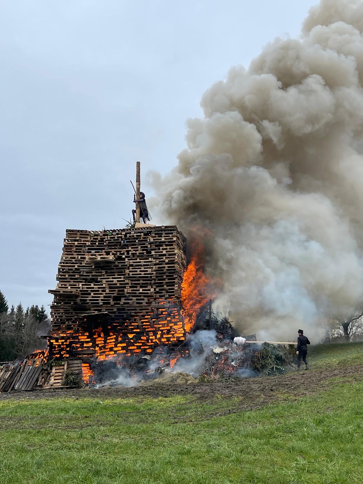 Bei allen drei Funkengruppen wurde beim nassen Aufbau genaustens darauf geachtet, dass im Funken trockene „Nester“ mit Heu, Stroh und Anzündholz eingebaut werden. So konnten die Funken trotz schlechtem Wetter angezündet werden und die Besucher wärmen und auf den Frühling vorbereiten. Wichtig ist allen Funkengruppen, dass die Bevölkerung die Möglichkeit hat, die Funkentradition weiter mit zu erleben, zusammen zu kommen und so die Nachbarschaft und die sozialen Kontakte zu pflegen.