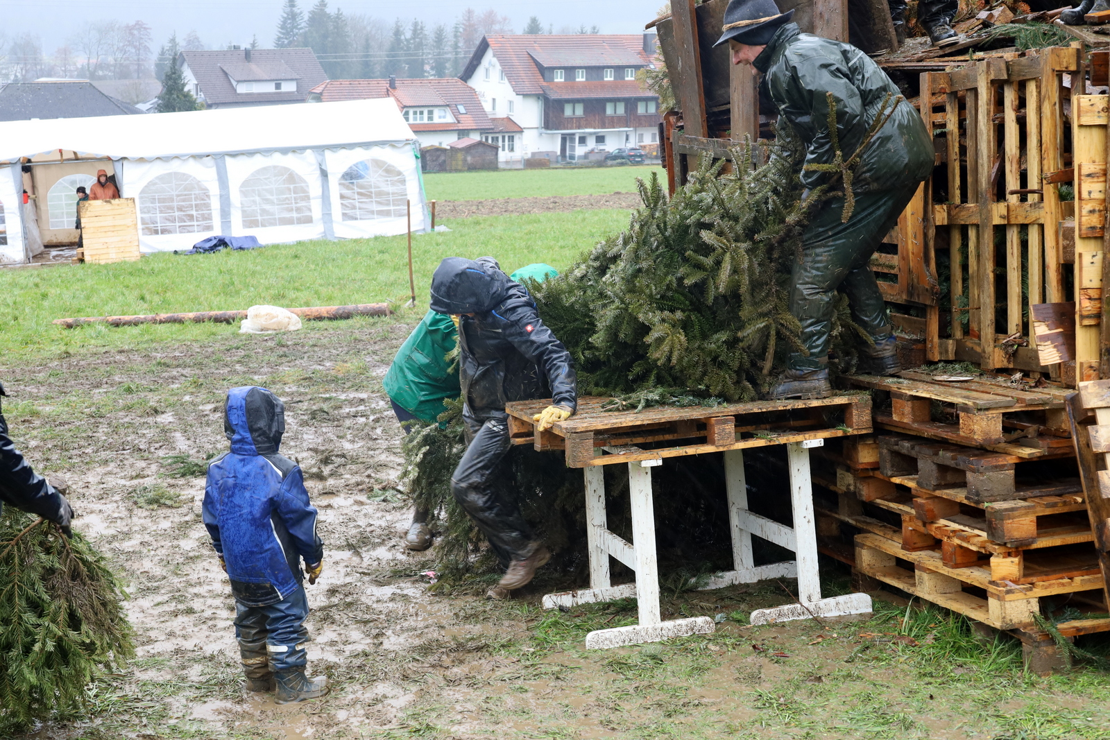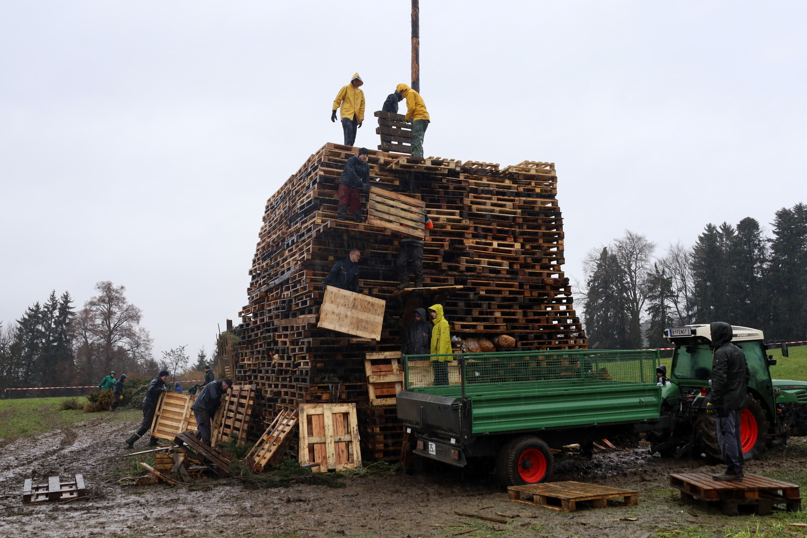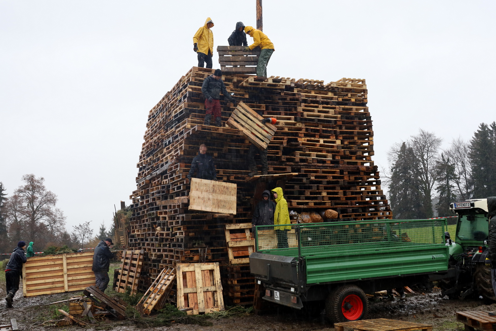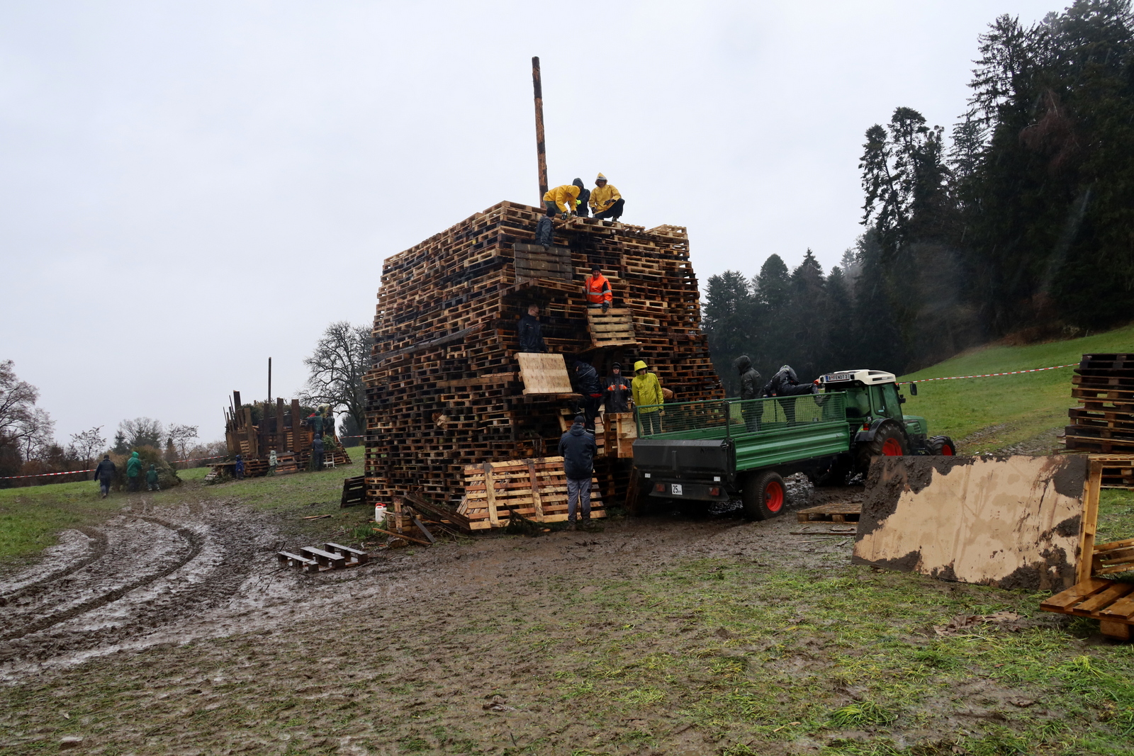 Hörbranzer Funkenbauer trotzten Regen und Matsch