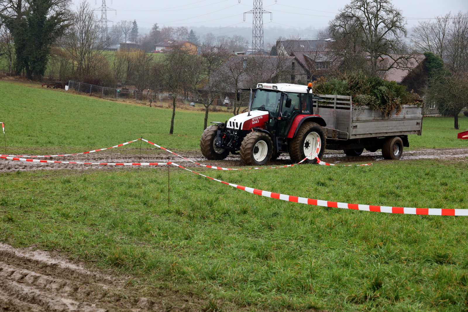 Auch in Hörbranz ist die Funkentradition schon lange in der Gemeinde verankert. Darum ließen sich die drei letzten Funkengruppen in Hörbranz von schlechten Wetter nicht beirren. Am Samstag mutierte der Funkenaufbau in eine wahre Schlammschlacht. Teilweise mussten die Zufahrtswege verstärkt und ausgelegt werden, dass die großen Traktoren nicht in der aufgeweichten Wiese versinken und die Grasnarbe mehr schädigen als unbedingt notwendig. Die Funkengruppe „Berg“ trotzte mit rund 35 Erwachsenen und über 50 Kindern dem kalten und nassen Wetter, der Funken wurde wegen dem Wetter am Sonntag Mittag angezündet. Während der große Funken und der Kinderfunken aufgebaut wurden, wurde auch ein großes Zelt vom „Verpflegungsteam“ hergerichtet. Dort konnten sich die Funkenarbeiter und dann während dem Funken die Besucher aufwärmen. Seit 2001 sorgt ein neuer Team am „Berg“ für neue Akzente, will aber auch Traditionen wahren. So steht an der Spitze des Funkens noch eine Hexe, intern gibt es darüber auch unter den weiblichen Helfern keine Diskussionen, der Brauch soll so erhalten bleiben. In diesem Jahr gab es zum ersten Mal eine Kinderdisco beim Berger Funken, damit auch die Jüngsten feiern können. Funkenchef Bernhard Huber und sein Team: „es freut uns, dass trotz Regen die Funkengruppe in so großer Zahl mithilft. Das zeigt wie wichtig allen der Erhalt der Berger Funkens ist.“