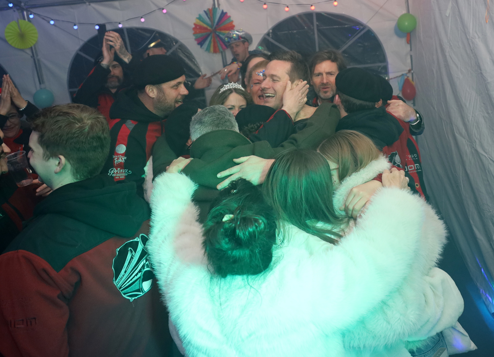 Als die Musik der Prinzenpaarshow eingespielt wurde, bildete die gesamte Gilde einen bunten Kreis um das Prinzenpaar. Mit den letzten Tönen wurde allen bewusst: Der Fasching ist vorbei. Ein emotionaler Moment, besonders für Prinzessin, Prinz, Infantinnen und Gefolge. Vorbei sind die gemeinsamen Augenblicke hinter der Bühne, die Anspannung vor dem Auftritt, das Einsetzen der Musik, die ersten Tanzschritte im Scheinwerferlicht. Vorbei die intensiven Planungen, die Terminabstimmungen und das gemeinsame Mitfiebern. Und vorbei auch das stolze Gefühl, nach einem gelungenen Auftritt den Applaus des Publikums zu genießen. Manch einer musste an diesem Abend merklich blinzeln, wenn eine Träne mit einem Lächeln weggelacht wurde.