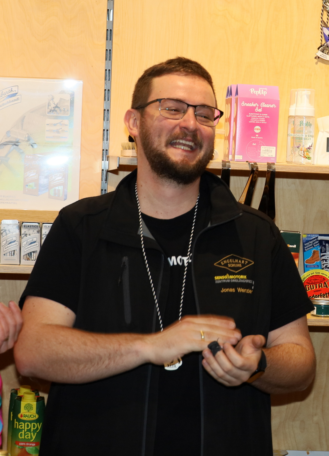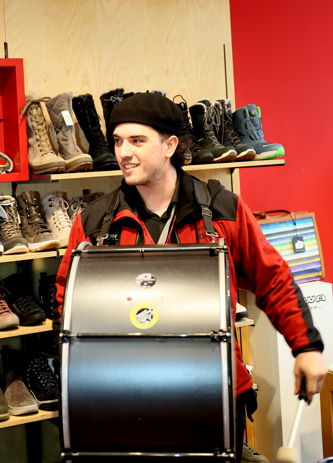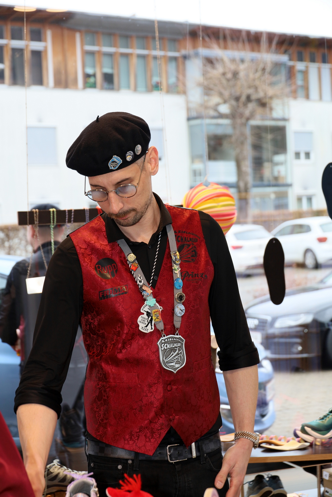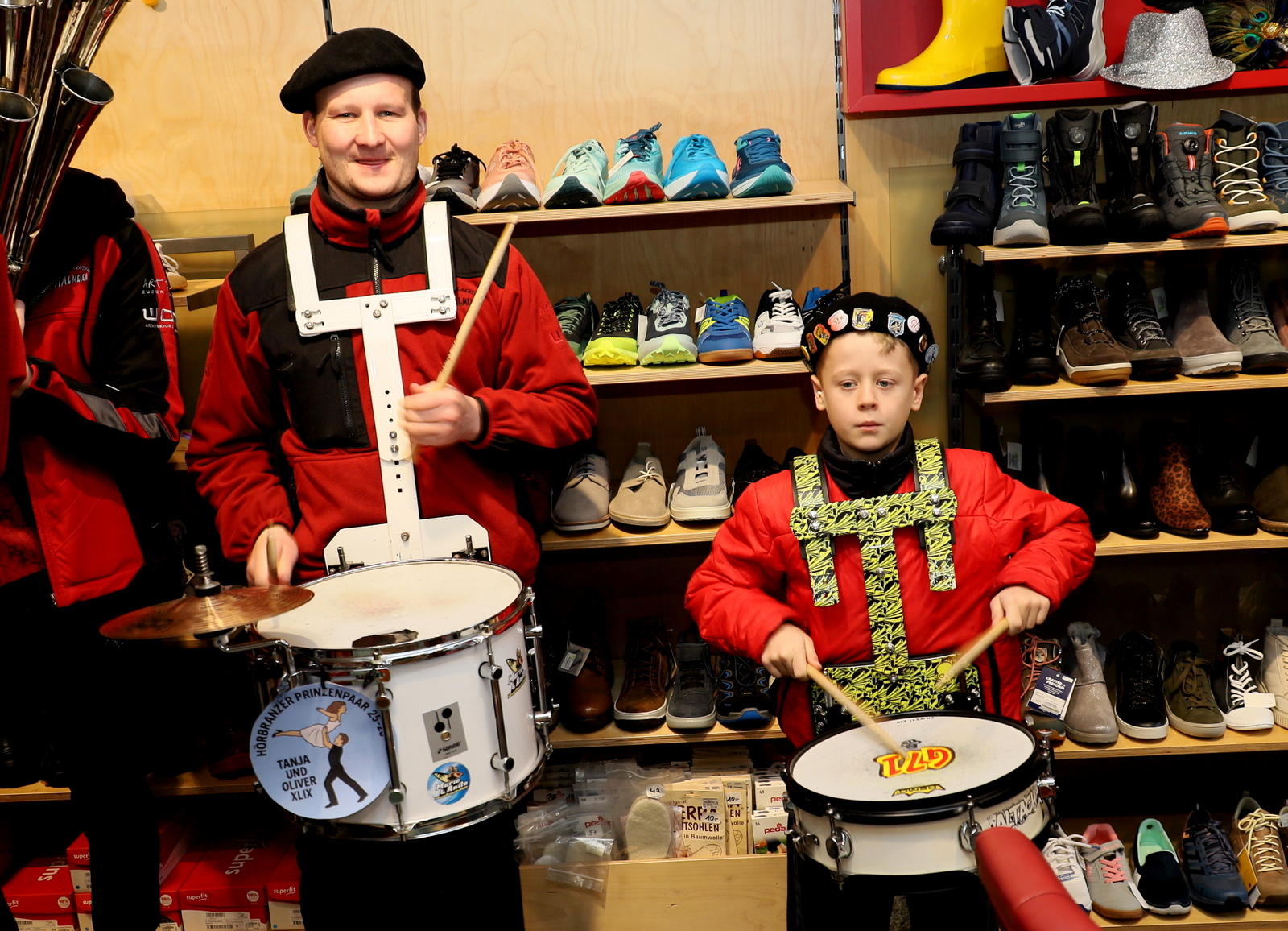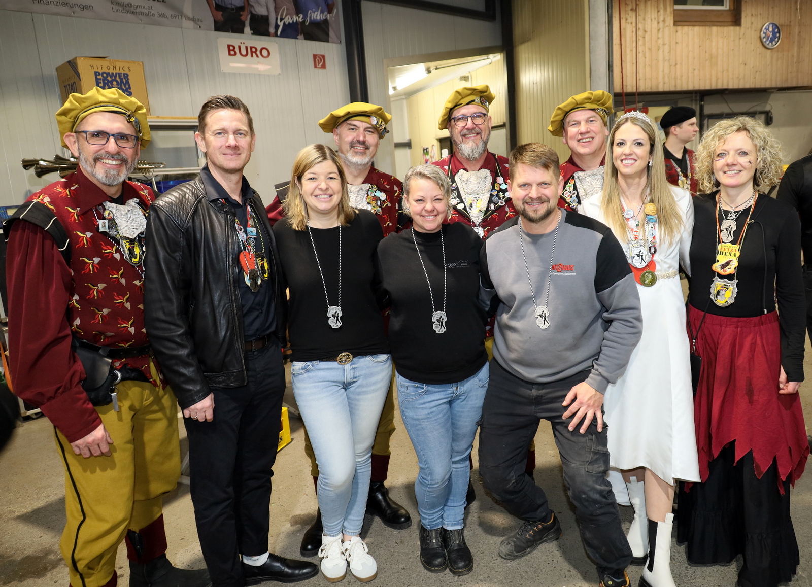 In der Lackiererei Hitzhaus wartete ein besonders närrischer Empfang: Neben dem Firmenchef, selbst ehemaliger Prinz, waren auch drei frühere Prinzessinnen anwesend. Es wurde angeregt über vergangene Faschingssaisonen gefachsimpelt, bevor die Tour weiter zum Schuhhaus Engelhart führte, wo die Gilde seit Jahren herzlich empfangen wird.