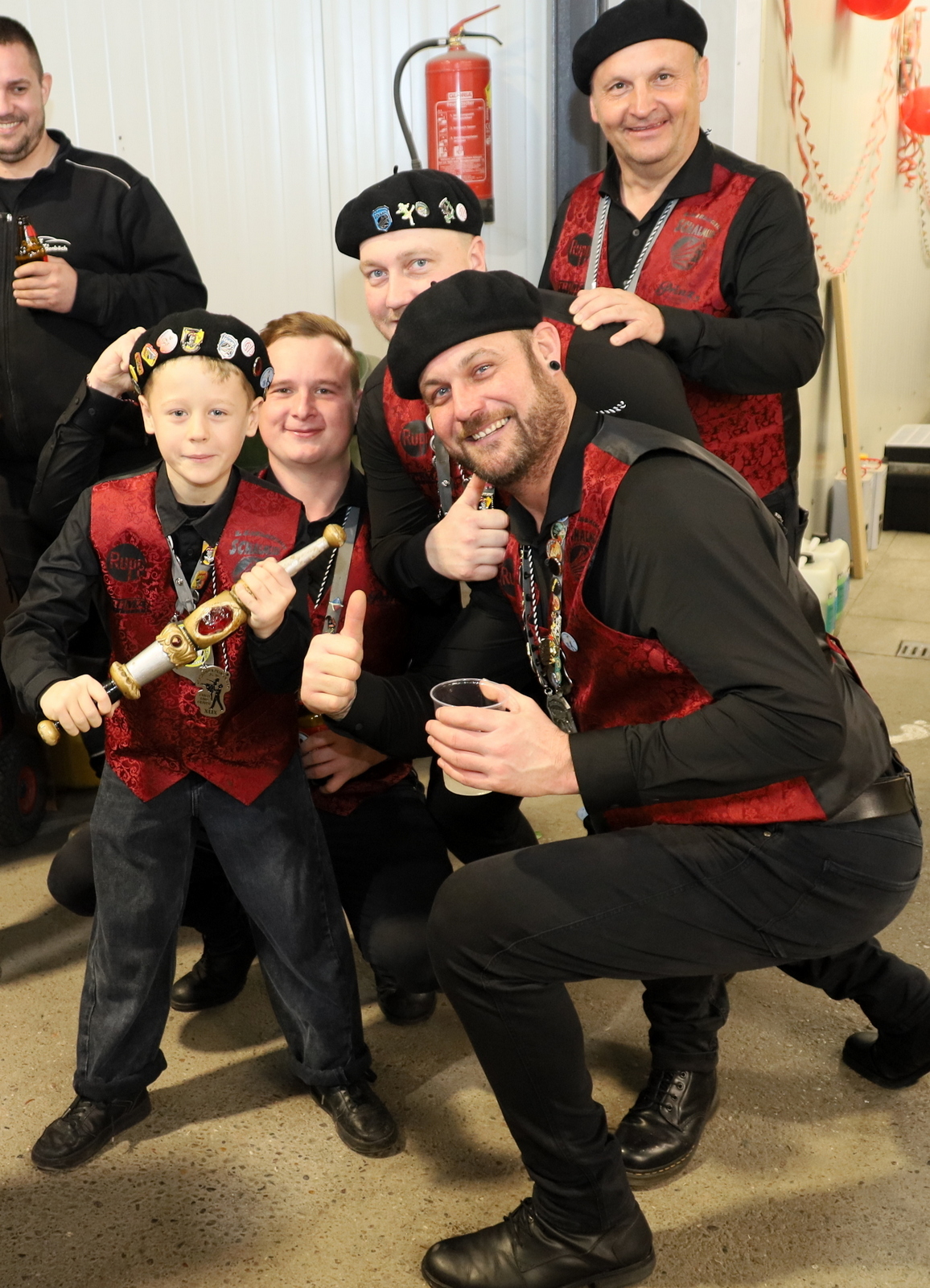 Begleitet wurden die Schalmeien von einer Abordnung der Hörbranzer Raubritter sowie vom amtierenden Leiblachtaler Prinzenpaar. Prinzessin Tanja und Prinz Oliver ließen es sich gemeinsam mit einem Teil ihres Gefolges nicht nehmen, die Schalmeien zu begleiten. Als sichtbares Zeichen der Wertschätzung hatten die Faschingsregenten auch ihre begehrten Prinzenpaarorden im Gepäck.