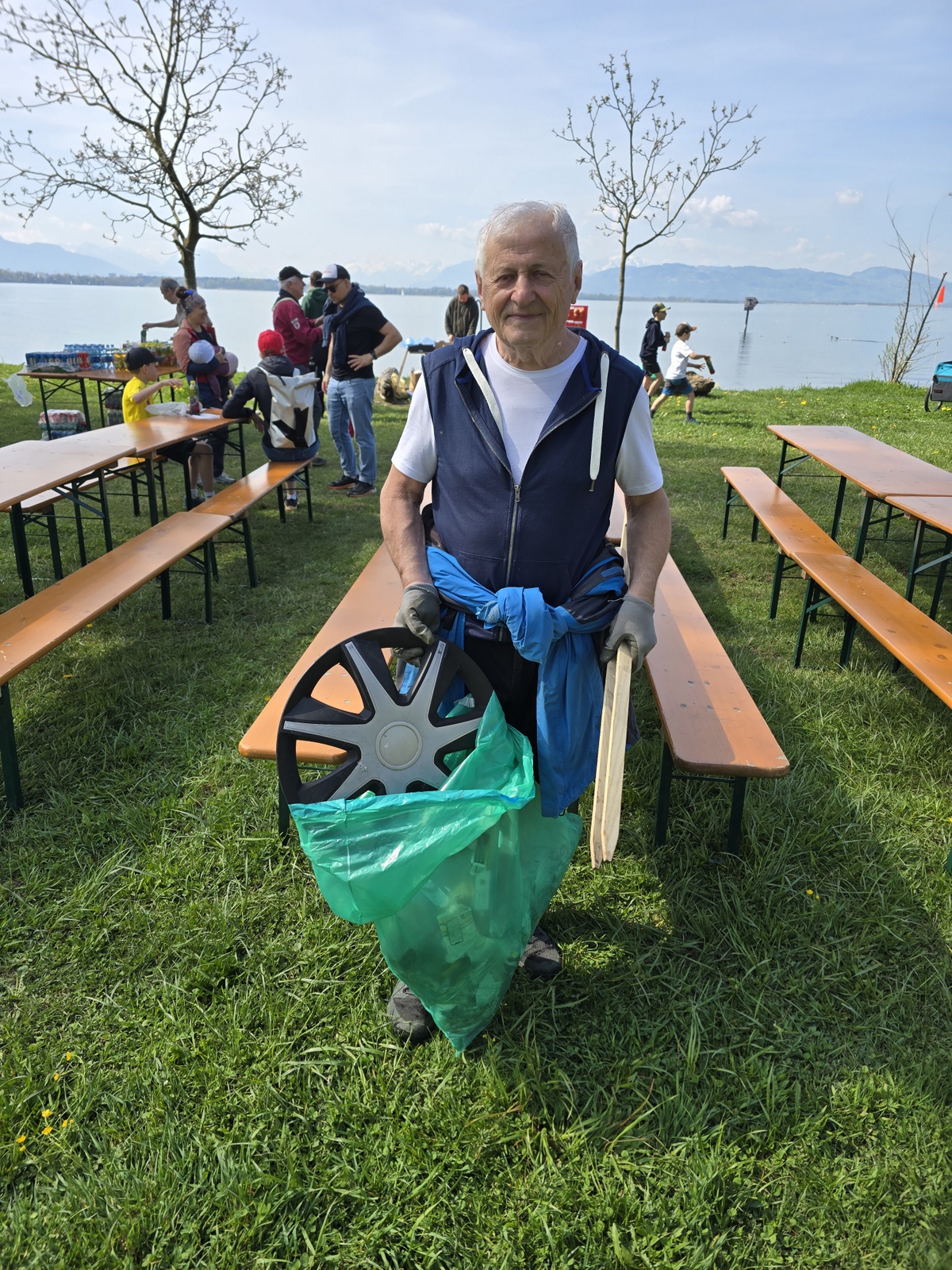 Normalerweise ist es Anfang April vormittags eher ruhig am Bodenseeufer. Jogger, Spaziergänger, ein paar Gassigeher mit ihren Hunden und gut eingepackte Radfahrer sind anzutreffen. Am Samstag den 18.04.2026 war aber um einiges mehr los am Hörbranzer Uferabschmitt des Bodensees. Familien, Vereine und sogar die Feuerwehr war mit grünen Säcken und Greifzangen bewaffnet unterwegs um Gutes für die Umwelt zu tun. Rund 200 Personen, darunter Eltern mit ihren Kindern sowie unter anderem engagierte Vereine wie die Jugendfeuerwehr, die Pfadfinder Leiblachtal, die Fliegenfischer Hörbranz, die Turner, Mitglieder des Ringerclubs AC, Hörbranzer Raubritter, Leiblacher Fetzahexa, Musiker vom Musikverein, Fronleichnamsschützen, eine große Gruppe Minifussballspieler des FC Hörbranz und Mitarbeiter der Firma Rupp Käsle setzen ihre Freizeit am Samstagvormittag ehrenamtlich für den Umweltschutz und die Erhaltung des Bodenseeparadieses ein. Das Naturjuwel wird im Sommer von vielen Gästen aus Nah und Fern als Erholungsgebiet, Sport- und Badeplatz genutzt. Am Ufer stehen Grillplätze zur Verfügung, die Liegewiese lädt zum Entspannen und Bräunen ein, im Schatten der Bäume und Sträucher können Sonnenempfindliche die Natur genießen und die gepflegten Wege können für Spaziergänge, Laufrunden und Radtouren genutzt werden. Doch leider vergessen einige nach einem Badetag oder einer Strandparty ihren Müll mitzunehmen und auch einzelne Hundebesitzer füllen zwar die Hundekotbeutel, werfen diese aber dann teilweise neben die aufgestellten Müllbehälter oder gar in Wiesen und Tümpel. So gab es doch einiges zu Tun für die Umweltunterstützer und die Müllsäcke füllten sich im Laufe des Vormittags recht schnell mit achtlos entsorgtem Abfall. Von Daniel Schwark (Klima, Umwelt, Energie und Mobilität/Gemeinde Hörbranz) wurden die Teilnehmer beim Feuerwehrhaus begrüßt, mit Säcken und Greifzangen ausgestattet und auf das Hörbranzer Gemeindegebiet aufgeteilt. Nicht nur das Bodenseeufer wurde gereinigt, auch die Bachzuläufe zum schwäbischen Meer und das Leiblachufer wurden abgelaufen und der Unrat wurde dort eingesammelt. Zur Mittagszeit trafen die verschiedenen Gruppen an der Hörbranzer Liegewiese ein, dort hatte Adrian Gutierrez-Perez vom Bauhof Hörbranz einen großen Anhänger bereitgestellt, in den die Säcke geworfen werden konnten. Von dort aus wird der Müll Sach- und Fachgerecht entsorgt oder wenn möglich wiederverwertet. Auch dieses Jahr waren wieder viele Flaschen, Dosen, Teller und Trinkverschlüsse einzusammeln, aber auch Plastikfolien, Becher, Feuerwerkskörper und unzählige Hundekotbeutel zählten zu den unerwünschten Fundstücken in der Natur. Von Dosenkanten und Scherben gehen nicht nur Gefahren für die Tiere am Bodenseeufer aus, ein Schnitt im Fuß kann einen Badetag schmerzhaft und gefährlich beenden.